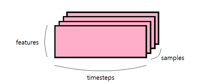 - 각 샘플은 특성 벡터의 (길이가 timesteps인) 시퀀스
