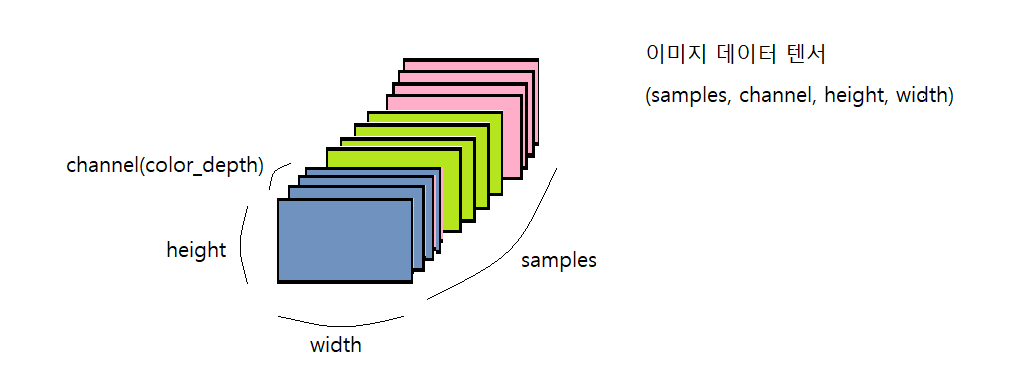 - 채널 우선(channel_first) : (samples, color_depth, height, width), 많이 사용 x