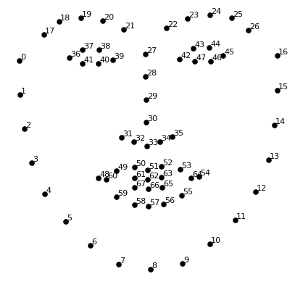 - 잘라진 얼굴 이미지에서 아래 68개의 이목구비 위치를 찾음