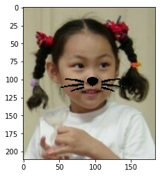 img_show[refined_y:refined_y+img_sticker.shape[0], refined_x:refined_x+img_sticker.shape[1]] = \