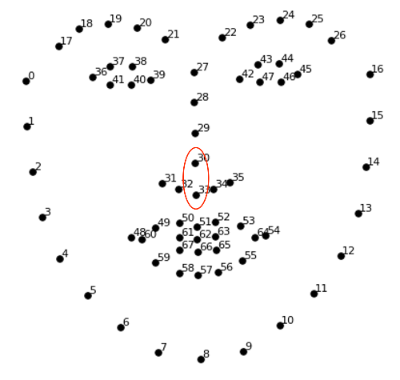 - 33번과 30번의 위치를 기준으로 고양이 수염을 붙여주는 식으로 코드를 작성하였다.